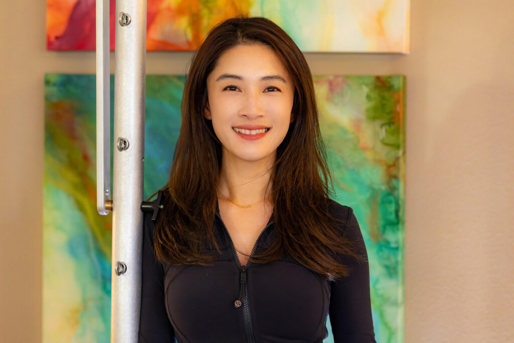 She especially enjoys working with the Chair in her own practice for its ability to challenge strength and clearly track progress, while she loves teaching on the Tower for its precision and ability to isolate and refine movement through spring-based work.