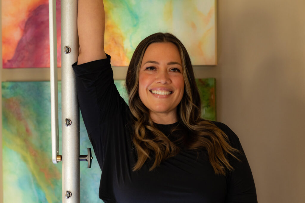 She especially enjoys working with the Ladder Barrel for its ability to create deep, restorative stretch, as well as the Pedi-Pole for its unique challenge and precision.